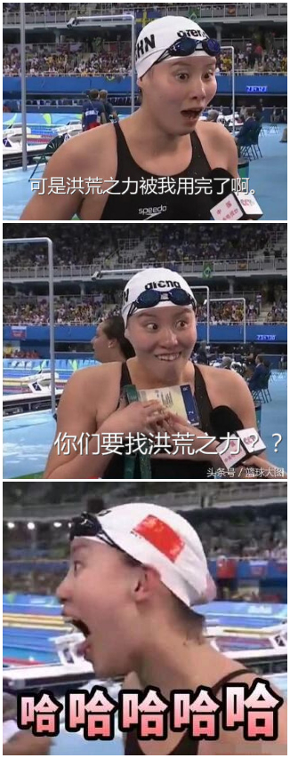 2016年8月8日,里约奥运女子100米仰泳半决赛,获得不错成绩的傅园慧接受采访时说:“我已经用了洪荒之力”,乐观幽默的这句话迅速火遍网络。