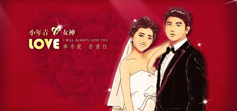 主题有了,LOGO定了,婚礼现场主画面也就完成了80%了,当然咯主画面里肯定不能少了主人公啦~~~漫画版的俊男靓女的组合(真怕画着画着就爱上了哈哈哈)